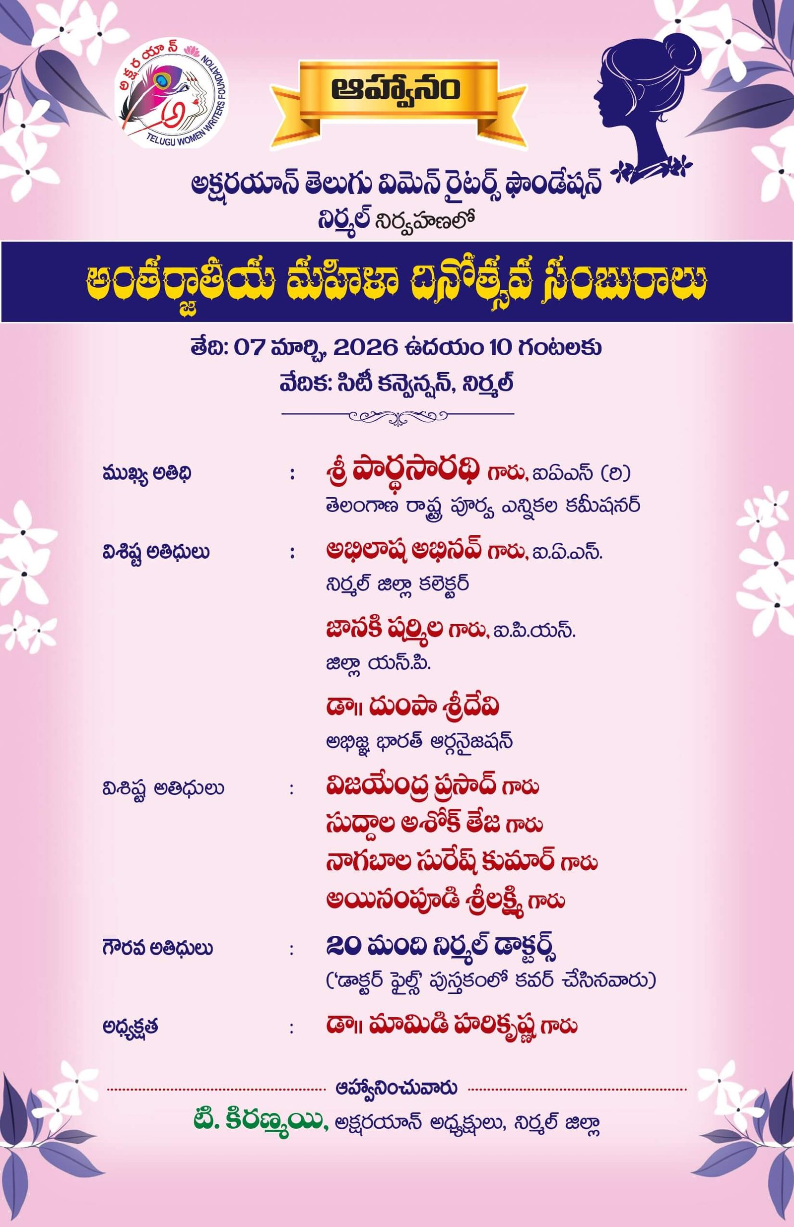 Aksharayan Telugu Women Writers Foundation, Nirmal – 1