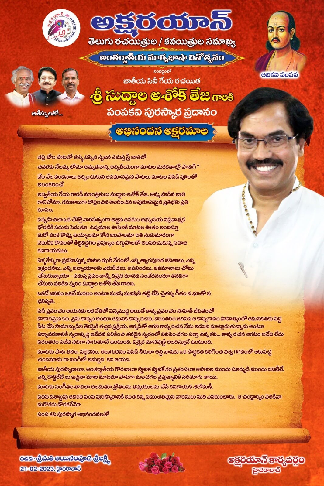 అక్షరయాన్–తెలుగు మహిళా రచయితల ఫౌండేషన్ - హైదరాబాద్ బేగంపేట లోని టూరిజం ప్లాజా హోటల్ లో అంతర్జాతీయ మాతృభాషా దినోత్సవం - 21 ఫిబ్రవరి 2023, ను నిర్వహించింది.